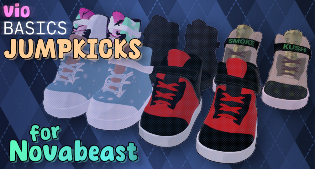 When installed via VRCFury, the JEANS for Novabeast have a blendshape that fit the bottom area of the JEANS with the JUMPKICKS. This can also be done by manually adjusting the blendshape.