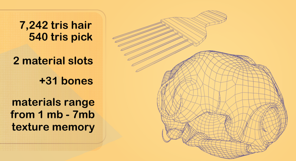 I made this for my personal avatar, since I always had an afro growing up. I must've spent hours teasing it into a spherical-esque shape, as round as I could go. If I didn't have a mirror nearby, I could use my shadow in a pinch. My hair texture has enough hold to holster the comb by the teeth when I'm not using it.